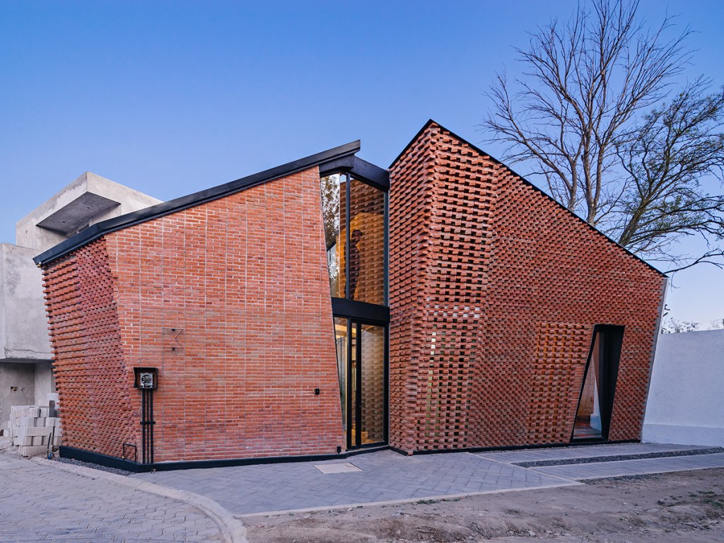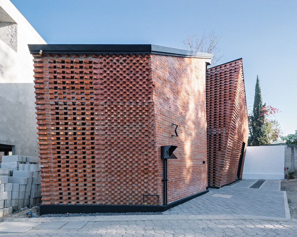 Diseñada desde el discurso de “Digital handmade”; esta vivienda integra elementos de materialidad local como el tabique rojo, definido por la cercanía a los productores de San Pedro Cholula. El acomodo del material de manera artesanal nos permite la generación de geometrías expresivas en base a la repetición modular en extraplomo.